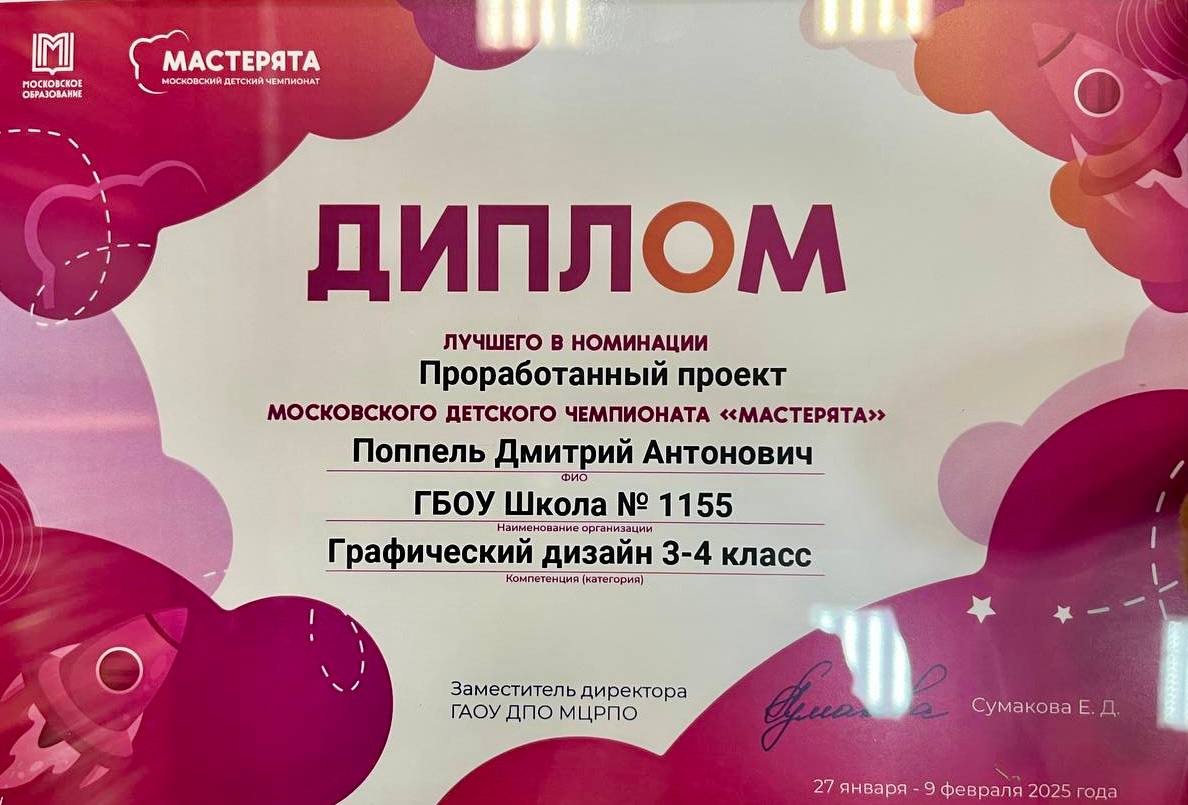 Дипломами «Лучшего в номинации «Проработанный проект» в возрастной категории 3-4 класс награждена наша команда из 3 «Б» класса — Поппель Дмитрий и Фесенко Алёна!