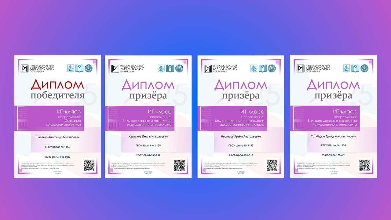 Наши одиннадцатиклассники из технологического профиля стали призёрами конкурса межпредметных навыков и знаний «Интеллектуальный Мегаполис. Потенциал»!