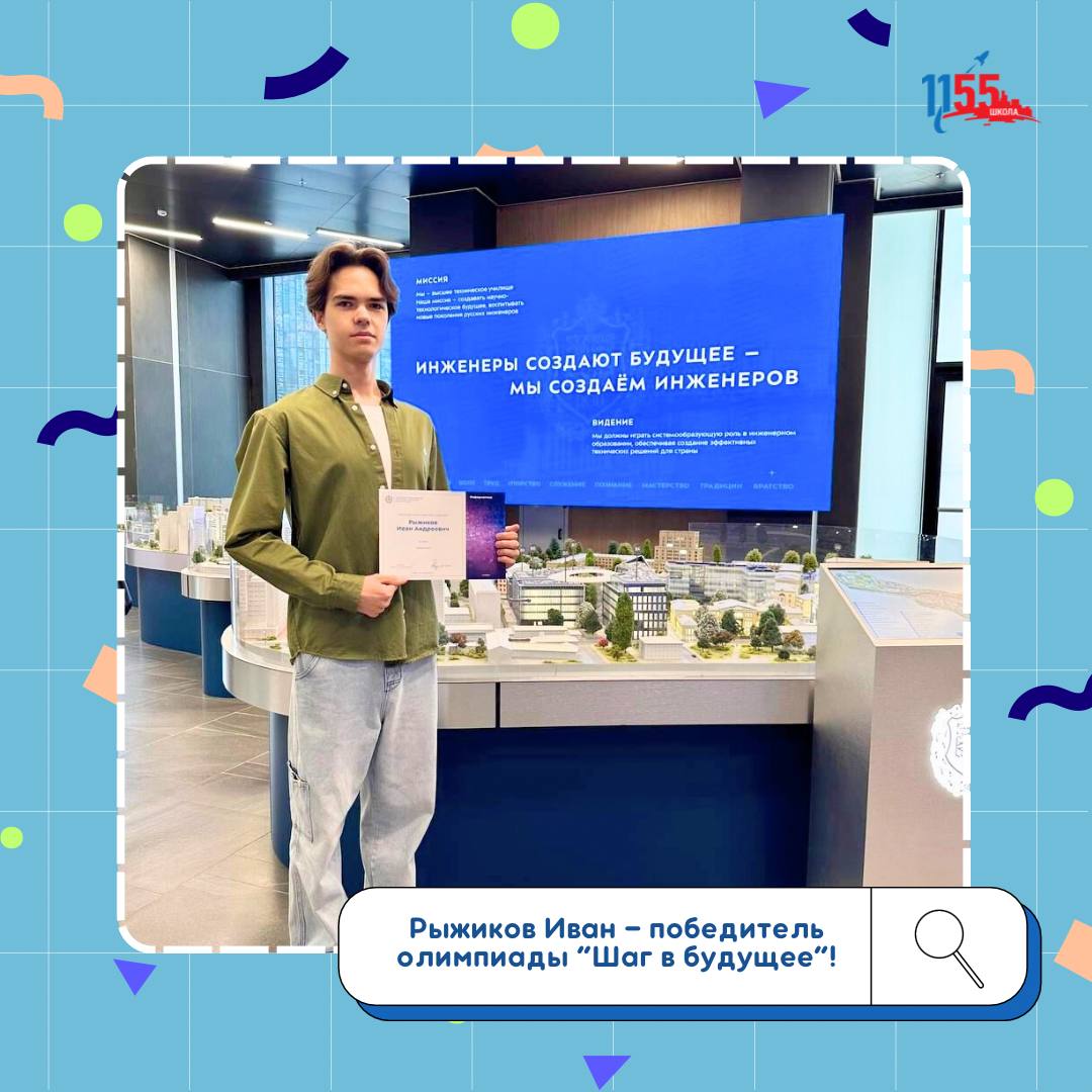 Поздравляем ученика 11 «А» класса Рыжикова Ивана с ПОБЕДОЙ в олимпиаде «Шаг в будущее», проводимой МГТУ им. Н. Э. Баумана!