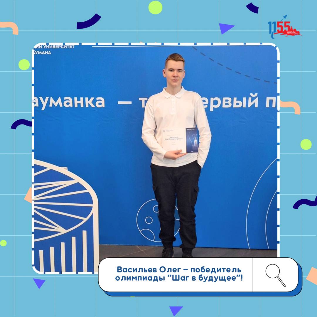 В МГТУ им. Н. Э. Баумана состоялась церемония награждения призёров и победителей олимпиады школьников «Шаг в будущее». Поздравляем нашего ученика 10 ИТ-класса Васильева Олега, который стал победителем олимпиады по профилю «Инженерное дело»!